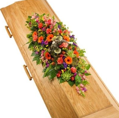 Make a bold statement of love and remembrance with our stunning Vibrant Double-Ended Oasis Spray. This eye-catching floral arrangement bursts with colour, showcasing an exquisite blend of seasonal blooms that come together in a beautiful harmony of shades and textures.